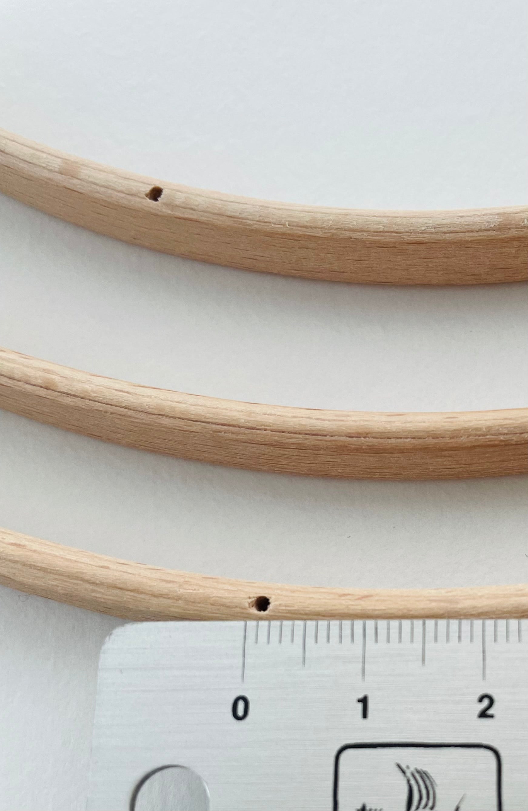 Gebohrte Holzringe natur – ideal für Babymobile & Makramé ø 22 und 23 cm